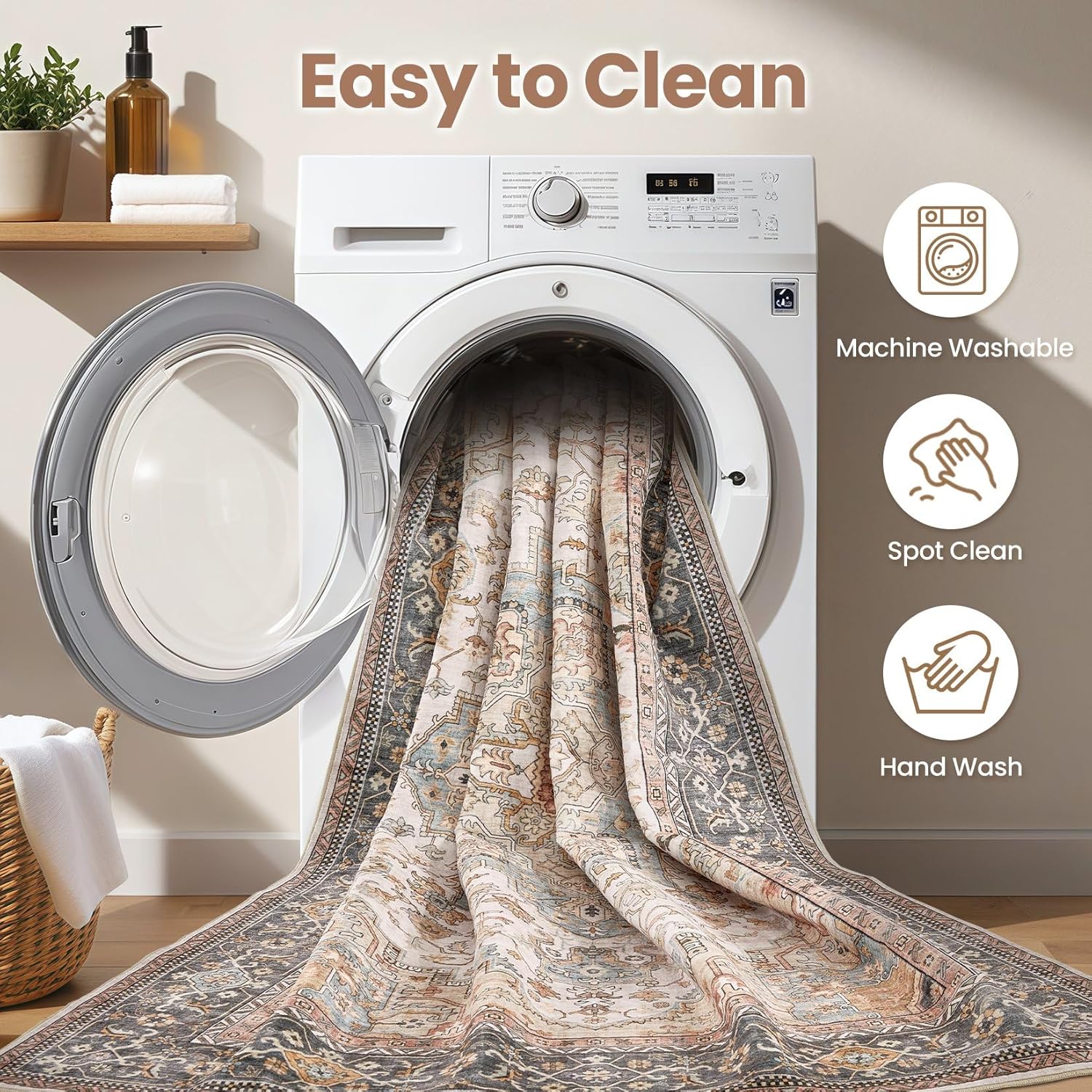 - Machine Washable Rug: The advantages of washable rug is that they are machine washable and easy to maintain, while 6x9 size and above are recommended to the nearby commercial laundry