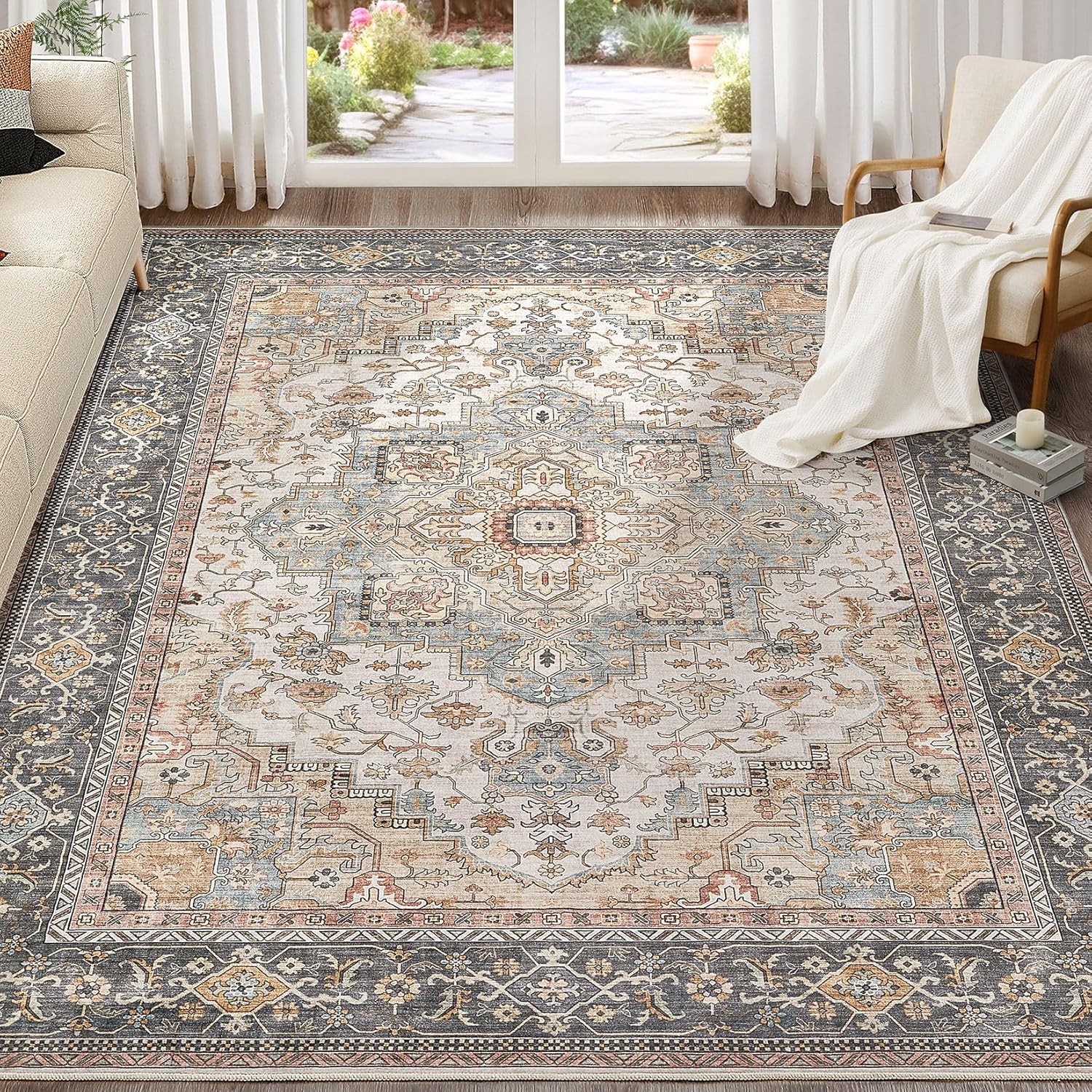 - Vintage Distressed Rugs for Living Room: Add warmth and cozy to your home with our distressed floral living room rug. Featuring a brown beige and orange color scheme, this rug complements your interior style, enhancing the overall aesthetic appeal of your living space. And the carpet is suitable for most home spaces, such as dining room, living room, bedroom, study room, nursery Room, home office, etc